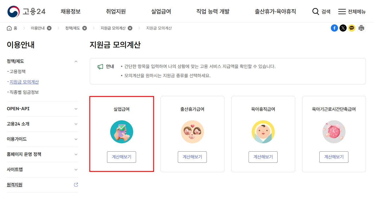 실업금여를 빠르게 계산해보려면 아래를 클릭하세요!